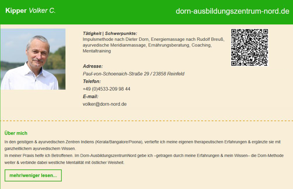 Virexerol, Halswirbelsäule ~ Brustwirbelsäule ~ Lendenwirbelsäule ~ Kreuzbein ~ Steißbein, Interview: Der von den Gesundheitsämtern akzeptierte Weg und Informationen aus der Naturheilkunde